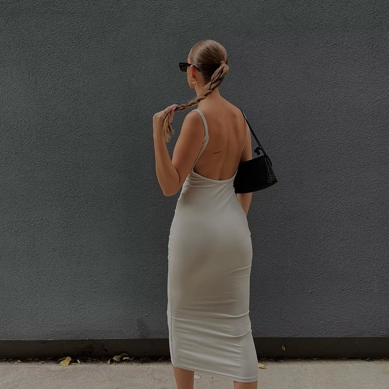 Bxucca | Slim-Fit Backless Suspender Dress for Women – Hip-Hugging Extra-Long Skirt for Tall Figures