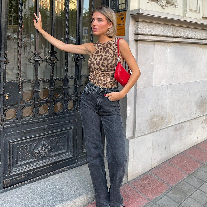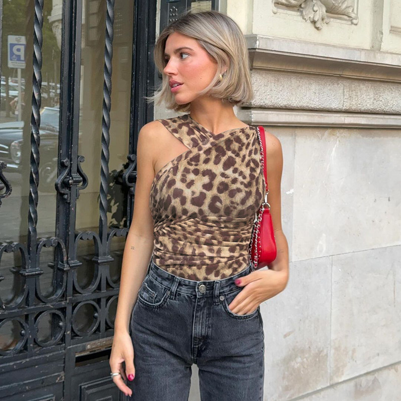 Make a statement with this leopard print slant collar jumpsuit, designed to create a flattering slim-fit silhouette while highlighting the waist and shoulders. The pleated high-waist design adds elegance and movement, and the hidden button closure ensures a sleek, polished look. Perfect for casual outings, evening events, or stylish streetwear, this jumpsuit combines contemporary European and American fashion trends with bold, eye-catching patterns. Crafted from high-quality, soft fabric, it provides comfort, durability, and a figure-enhancing fit, making it an ideal choice for women seeking a chic and sophisticated one-piece outfit.