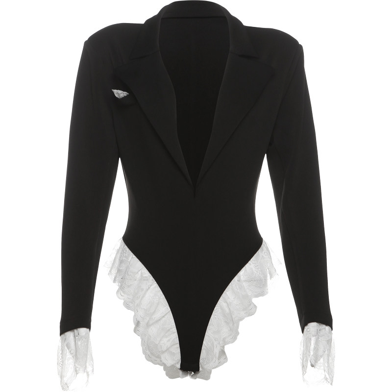 Elevate your wardrobe with this lace-spliced deep V-neck long-sleeve jumpsuit, designed to create a slim, flattering silhouette. The intricate lace detailing and fitted design enhance feminine elegance, while the versatile one-piece style allows it to be paired effortlessly with skirts, pants, or worn alone as a statement outfit. Perfect for evening outings, casual events, or fashionable streetwear, this jumpsuit combines contemporary European and American trends with figure-enhancing comfort. Crafted from high-quality, soft, and stretchy fabric, it ensures flexibility, durability, and a polished, stylish appearance.