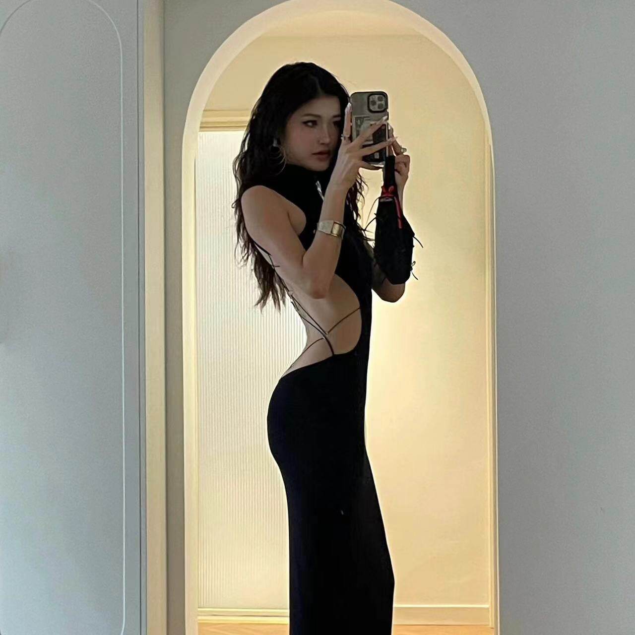 Elevate your style with this backless bow long dress, designed to combine elegance with a subtle, modern allure. The half-turtleneck adds a sophisticated touch, while the slim-fitting silhouette accentuates the waist and creates a flattering figure. Perfect for evening events, formal dinners, or upscale parties, the dress features a playful bow detail at the back, adding feminine charm to its sleek, polished design. Crafted from high-quality, comfortable materials, it ensures graceful movement and a refined appearance. Ideal for women seeking a confident, sexy, and chic outfit that blends contemporary European and American fashion trends with timeless elegance.