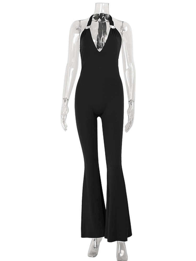 Step out in confidence with this V-neck halter backless jumpsuit, designed to create a flattering slim-fit silhouette while accentuating the waist. The low-cut neckline and open back add a modern, elegant touch, while the slightly flared trousers provide balance and movement. Perfect for evening events, parties, or stylish casual outings, this jumpsuit blends contemporary European and American fashion trends with sophistication. Crafted from soft, high-quality fabric, it ensures comfort, durability, and a figure-enhancing fit, making it an ideal one-piece outfit for women seeking chic, polished, and fashion-forward style.